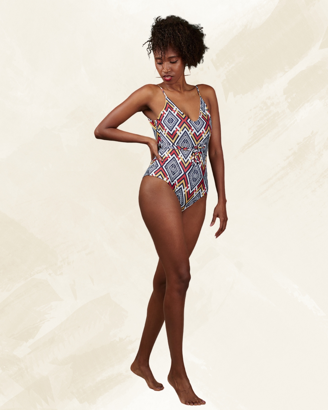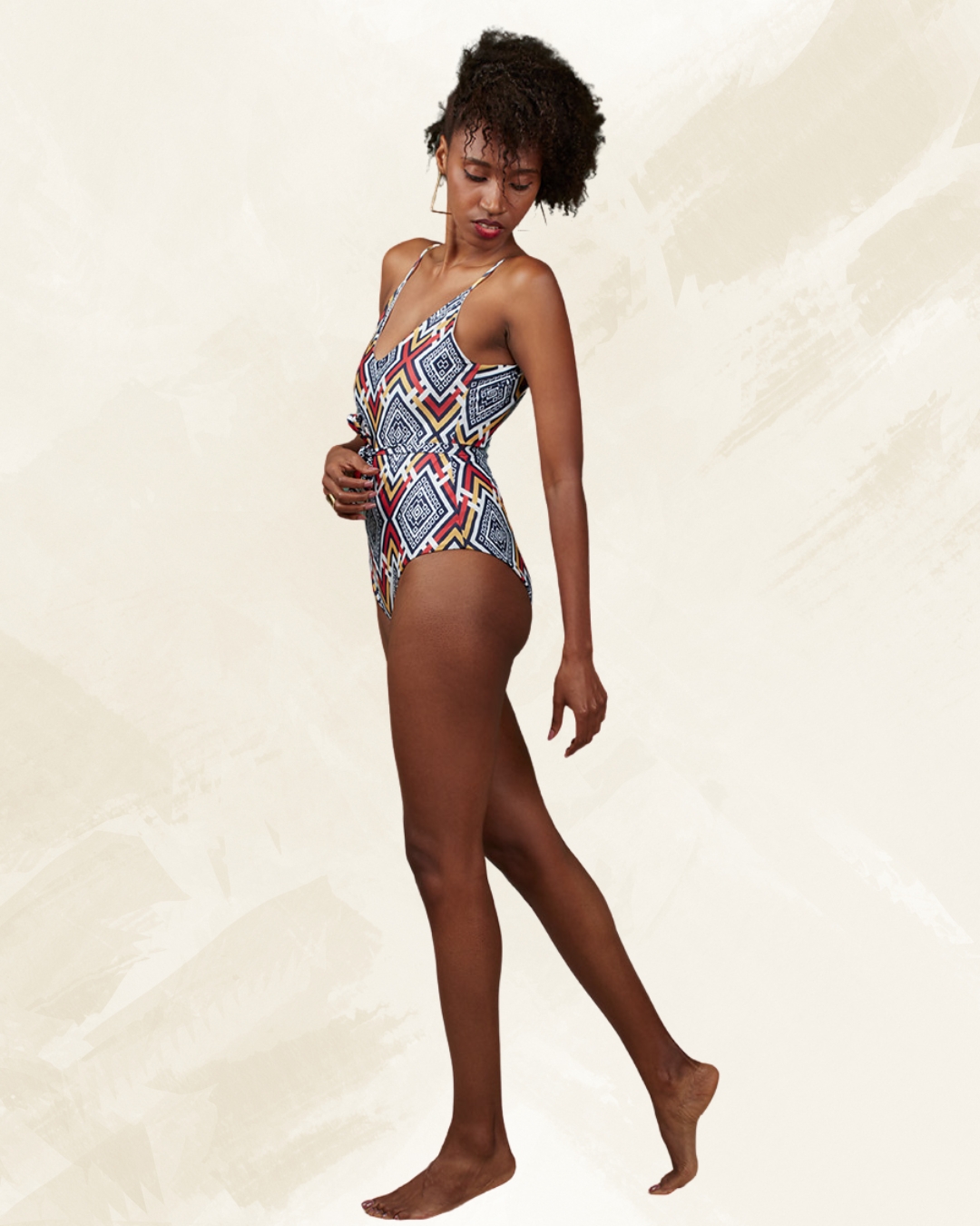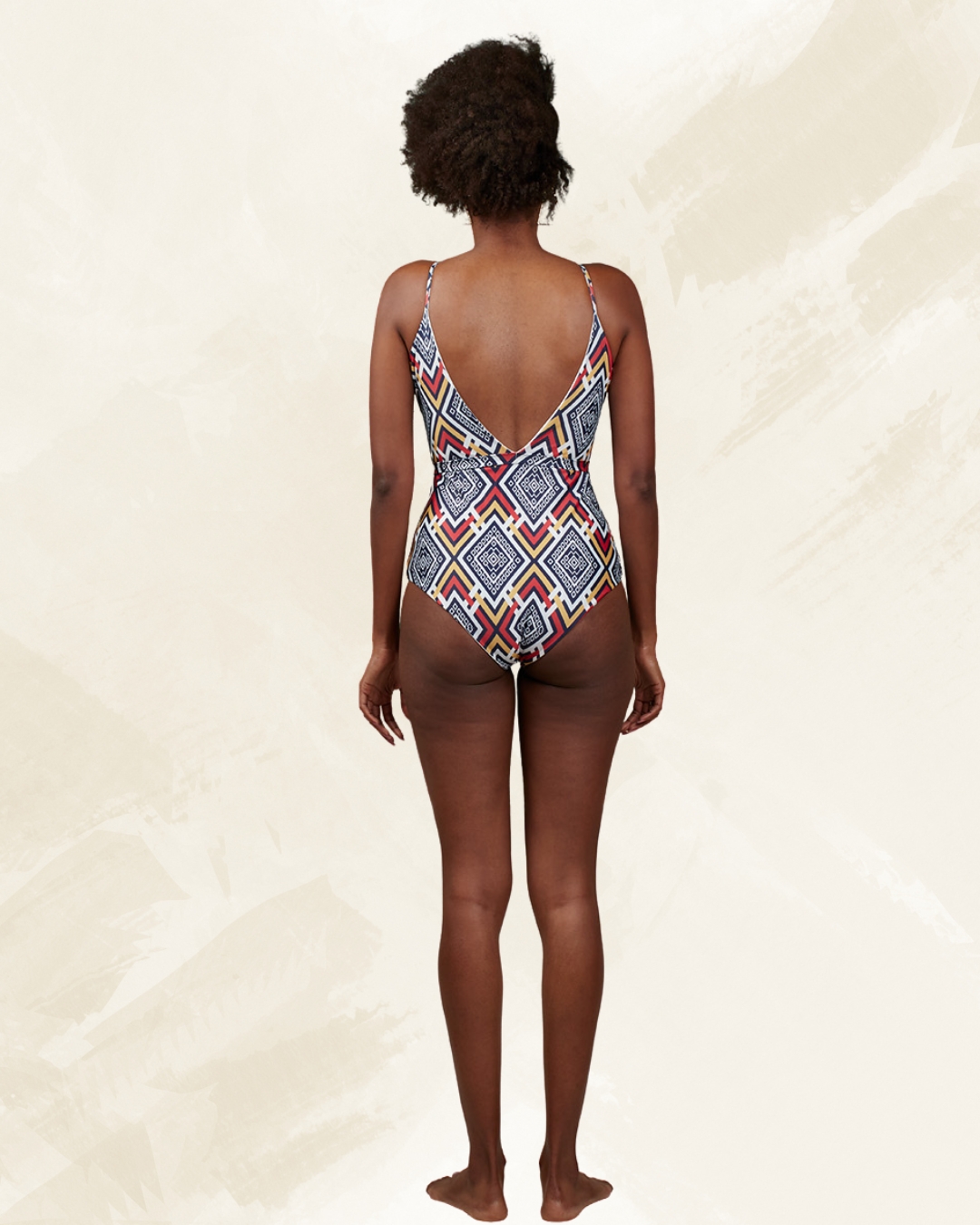 Es una tela con patrones geométricos y símbolos típicamente usados por la tribu Mumuila. Una colección vibrante, colorida y atrevida para una mujer fuerte, que no se rinde y nunca deja de soñar.